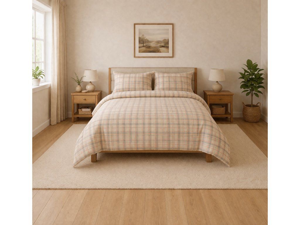 Flanelové povlečení 140x200 + 70x90 – béžovo-žlutá kostka | Mathaus