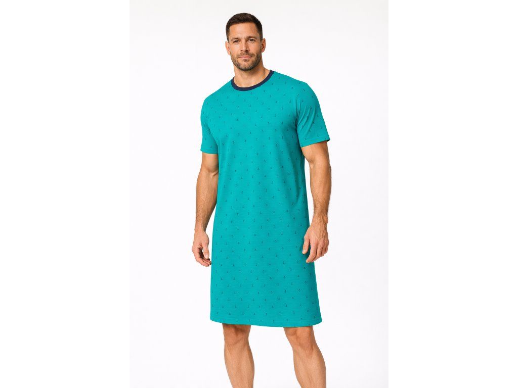 Pánská noční košile Martin krátký rukáv modrá kotvy